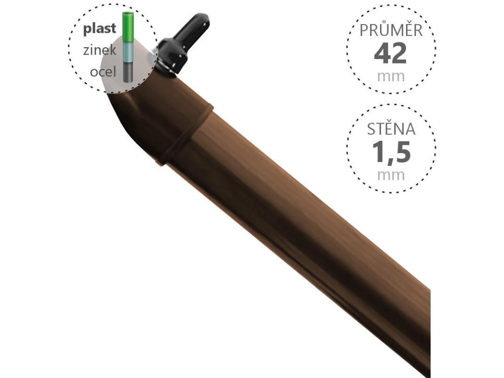 Vzpěra Zn+PVC / průměr 42x1,5 mm, různé délky, barva hnědá