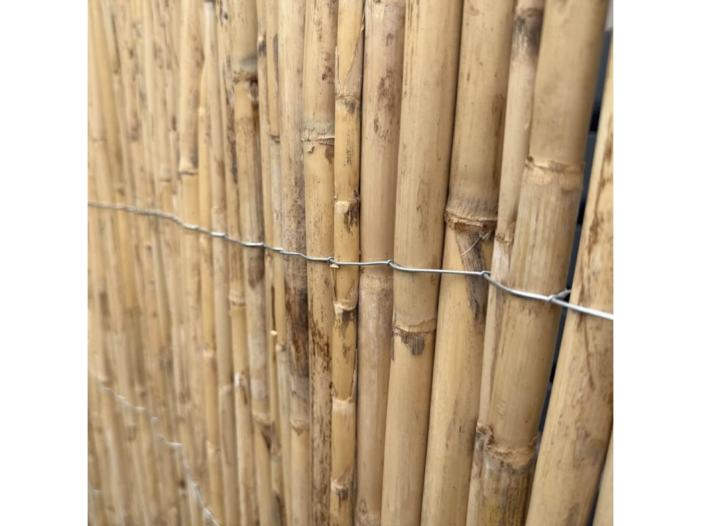 Bambus je možné natírat, lakovat a je odolnější a pevnější než rákosová rohož. Námi nabízený bambus má plný kulatý tvar o průměru 2 - 3 cm. Délka bambusového plotu je 5 metrů.