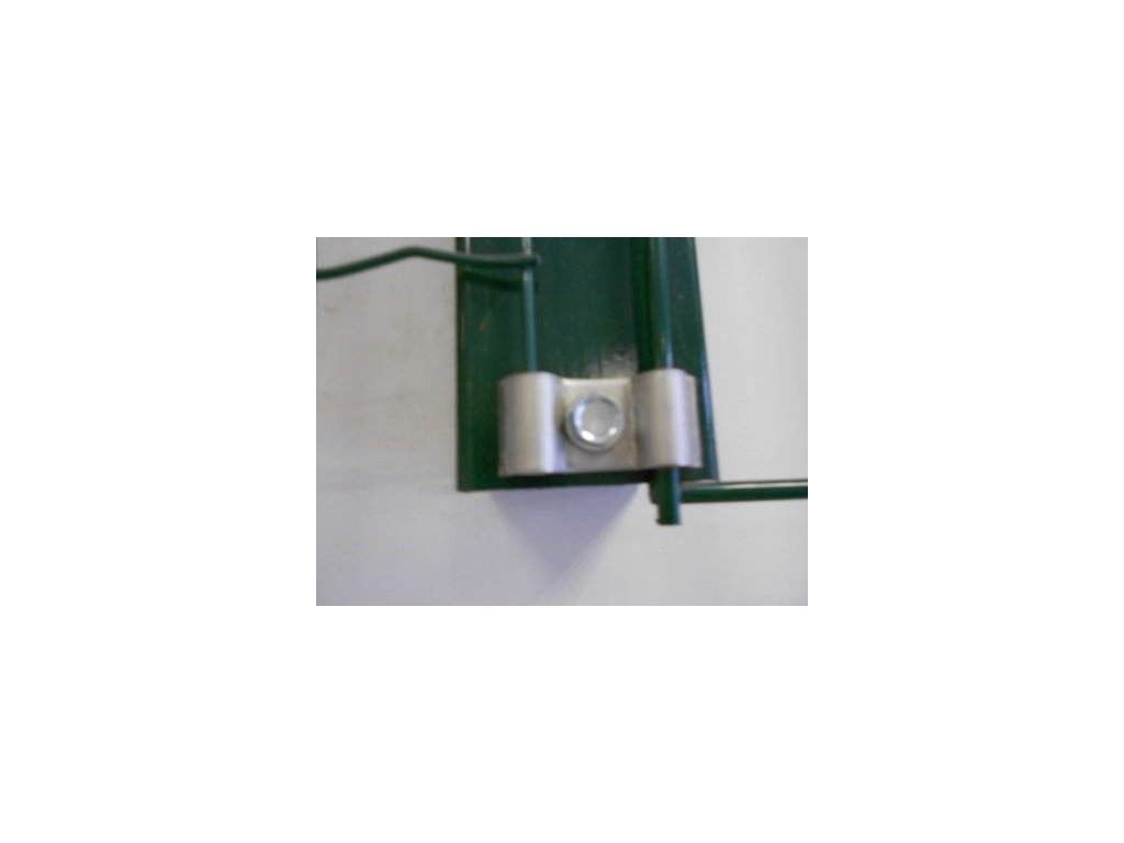 Úchyt panelu k jeklovému sloupku - motýlek, průběžný. Úchyt je nerezový. Doporučujeme k jeklovým sloupkům pro uchycení svařovaných sítí zinkovaných.